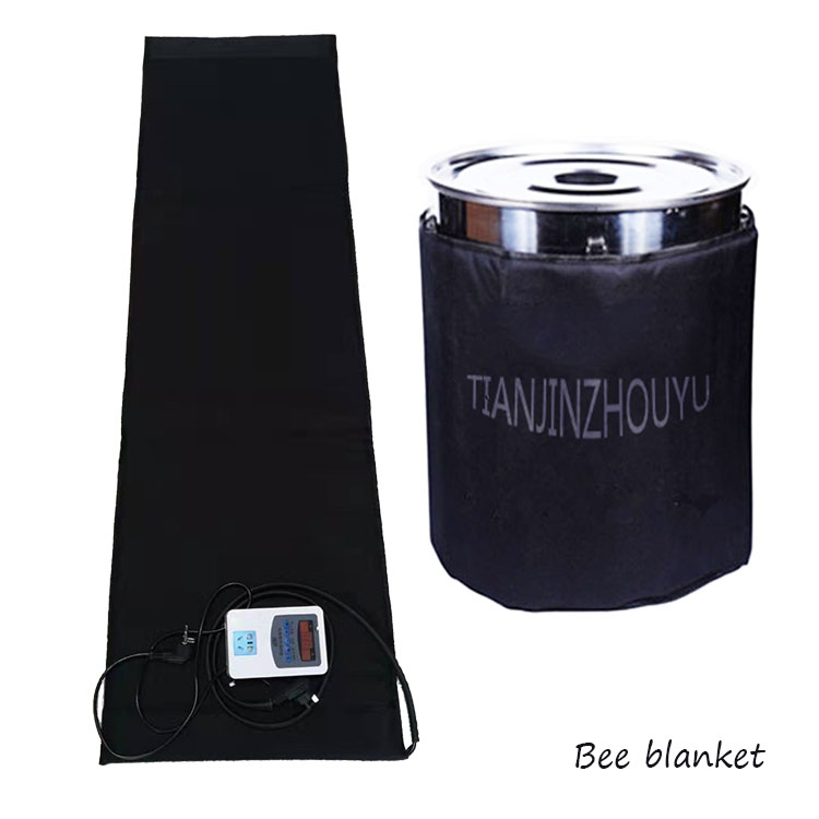 將融蜜寶圍在蜜桶周圍,將兩邊的魔術(shù)貼帶粘緊,設(shè)定好溫度自動控溫。融蜜寶自身帶有定溫開關(guān),養(yǎng)蜂廠家可放心使用。